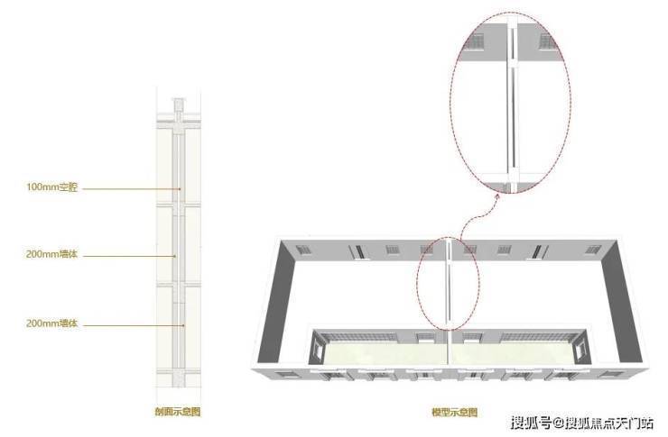 与其他风貌共用一堵分户墙不同的是,忻园的风貌别墅采用双层分户墙做法,每户之间没有共用墙。200mm厚度的墙体,中间还设置了100mm空腔,避免邻里的相互影响,带来舒适静谧的居住感受。