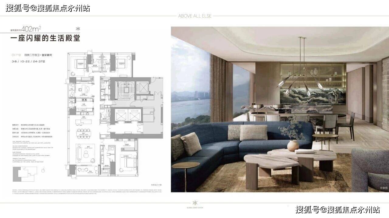 大平层公寓:预计单价区间为15-20万/㎡,总价门槛3000万起。其中主力户型集中在250-380㎡,对应总价范围约3750万-7600万;而1000㎡的顶级大平层产品,总价预计将突破1.5亿元,主要面向全球顶尖企业主及高净值家庭。