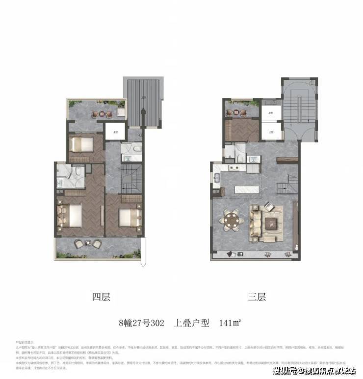 且从户型图上看,横厅以及内庭院挑空等设计,户型设计更优秀且实际利用率更高。