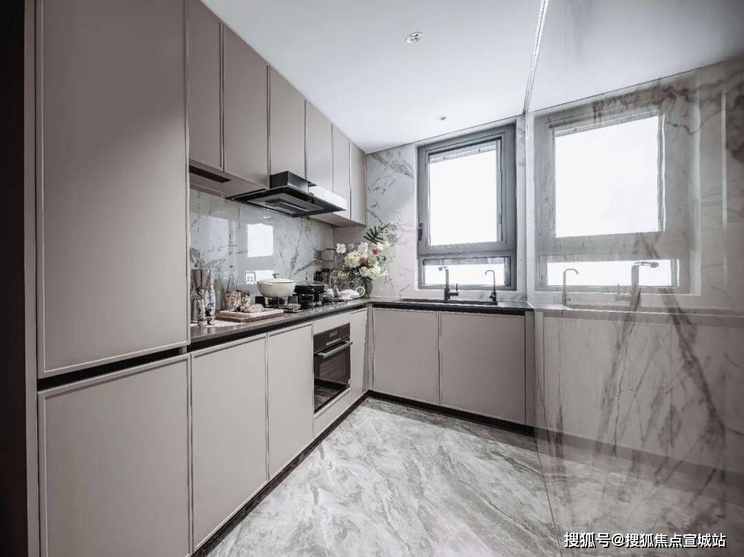 在保留南北通透、客餐厅一体化的同时,厨房空间迎来升级,U型大厨房不仅提供了更富裕的操作台面空间,也避免了烹饪过程中频繁转身移动传菜带来的不便。