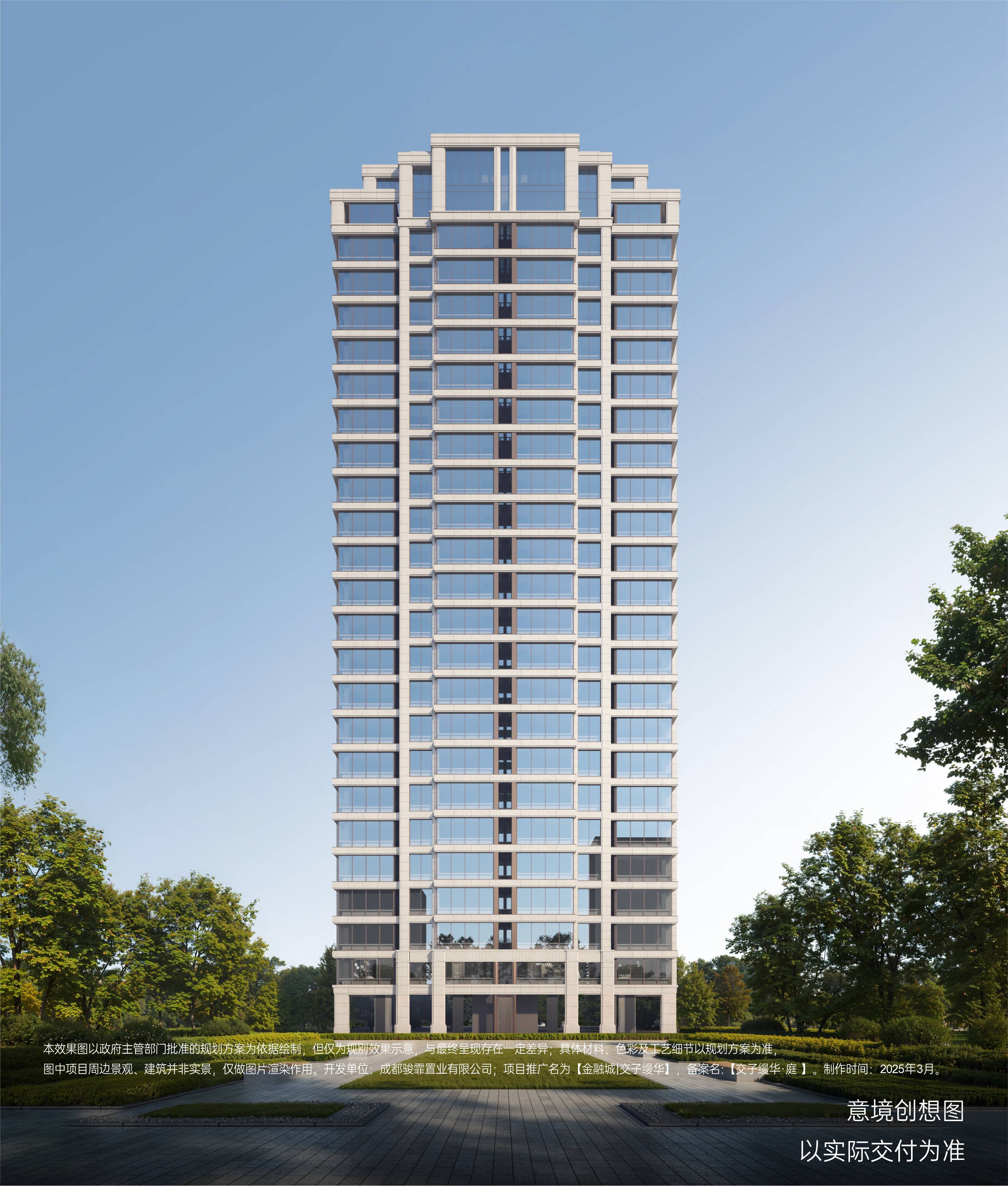 位置在锦江区金融城东核心板块,紧邻交子公园与双子塔,由润达丰滨江与渝太地产联合开发。总占地约 28 亩,容积率 2.0,绿化率 30%。规划涵盖小高层与叠拼产品,总户数 172 户,车位比 1:2.62,梯户比以低密舒适配置为主。主力户型为 144-363㎡三居至五居,含平层与顶跃,精装交付(装标 8000-12000 元 /㎡),均价约 5.3-6.5 万 /㎡,总价大致在 1000-2300 万,具体交房时间以批次为准。
