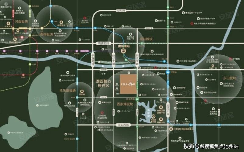 产业与教育:紧邻百家湖硅巷(2000 余家企业)与上海大众南京基地,高知客群密集;周边覆盖雨花外国语小学南站校区、百家湖小学等教育资源,未来板块规划新增中小学用地。
